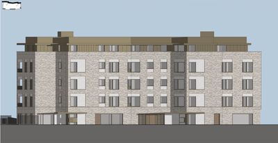 This plan crams too much onto a small site. The result is a bulky, crowded development that’s out of place in a low-rise village setting.